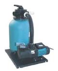 Напольные песочные фильтры, выполненные из высококачественного полиэстера, установленного на литую платформу, укомплектован манометром, клапанами для стравливания воды и воздуха и верхним селекторным вентилем.